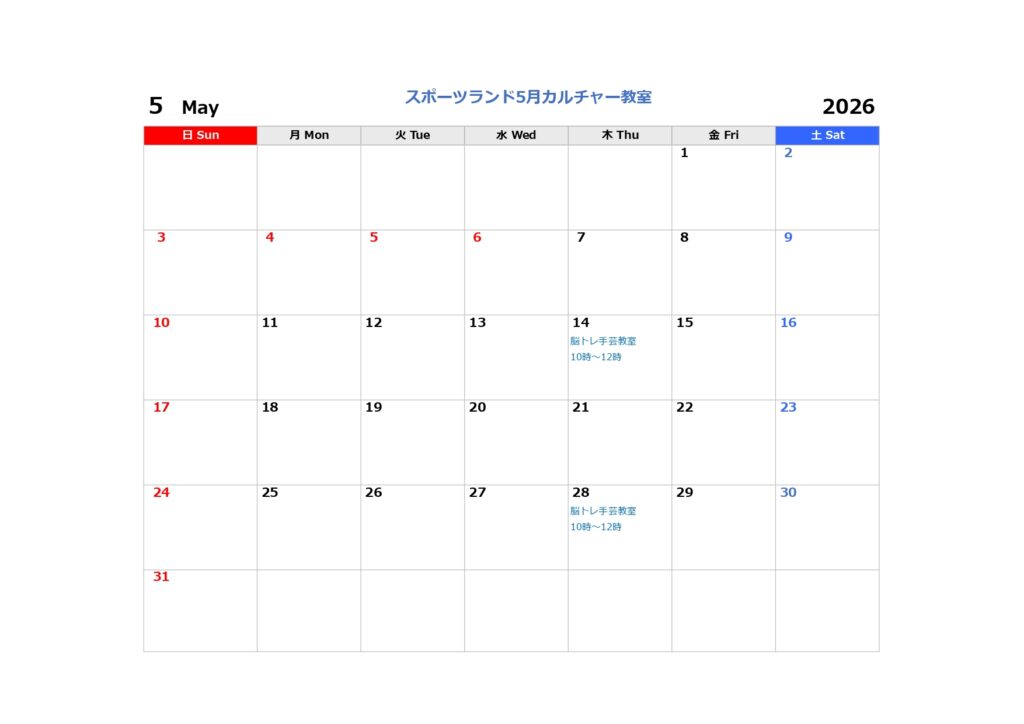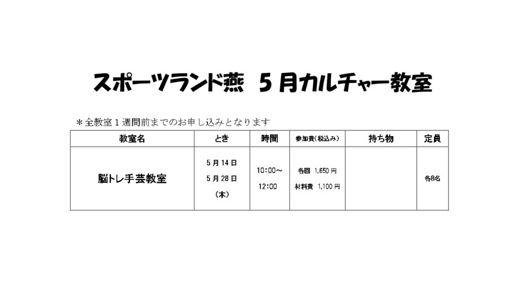 スポーツランド燕カルチャー教室5月の日程はこちらからご確認ください。